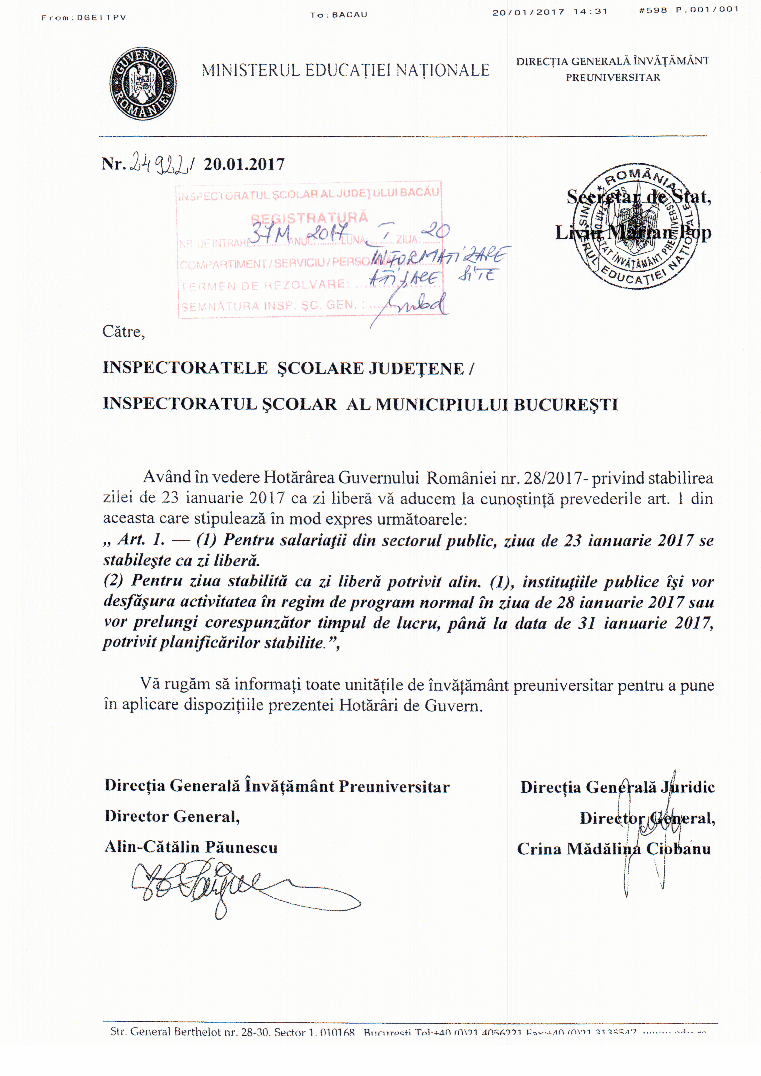In atentia unitatilor de invatamant-H.G nr. 28/2017