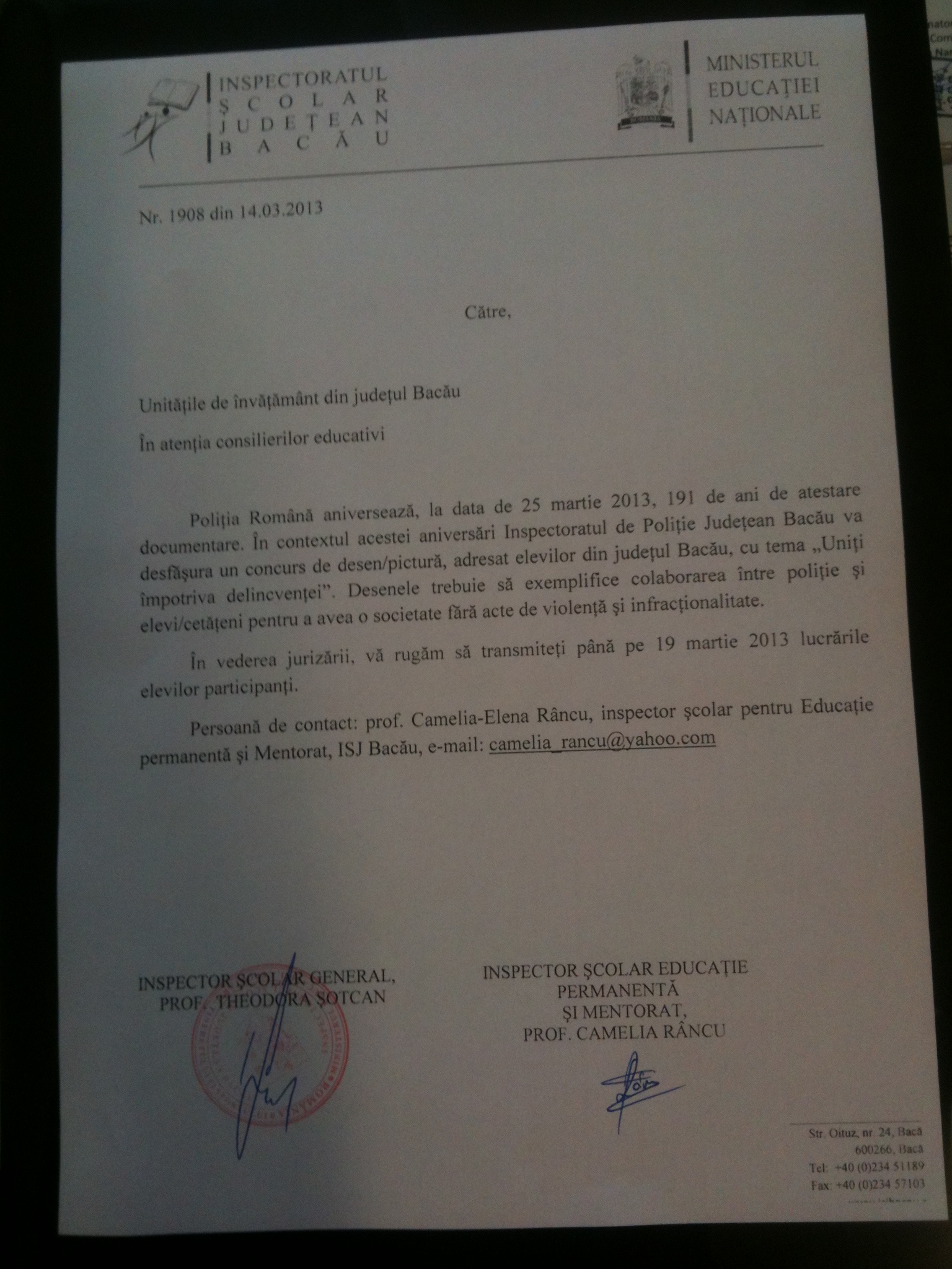 CONCURS DESENE/PICTURA, INSPECTORATUL DE POLITIE JUDETEAN BACAU