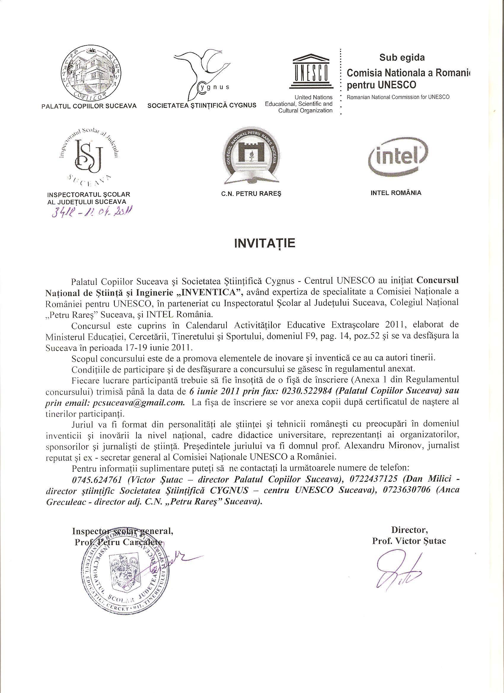 Invitaţie Inventica, Suceava, 17-19 iunie 2011