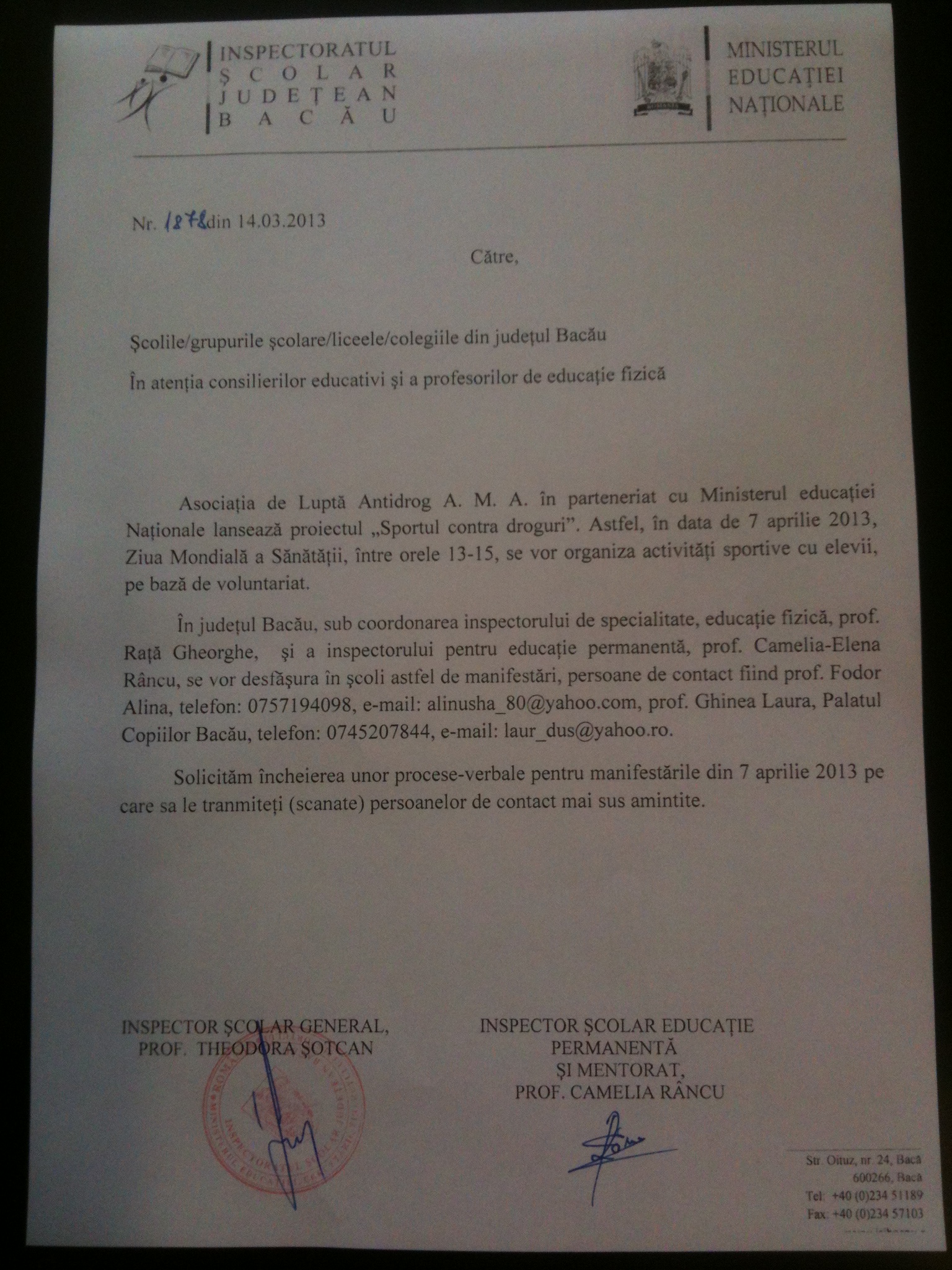 PROIECT NATIONAL "SPORTUL CONTRA DROGURI"