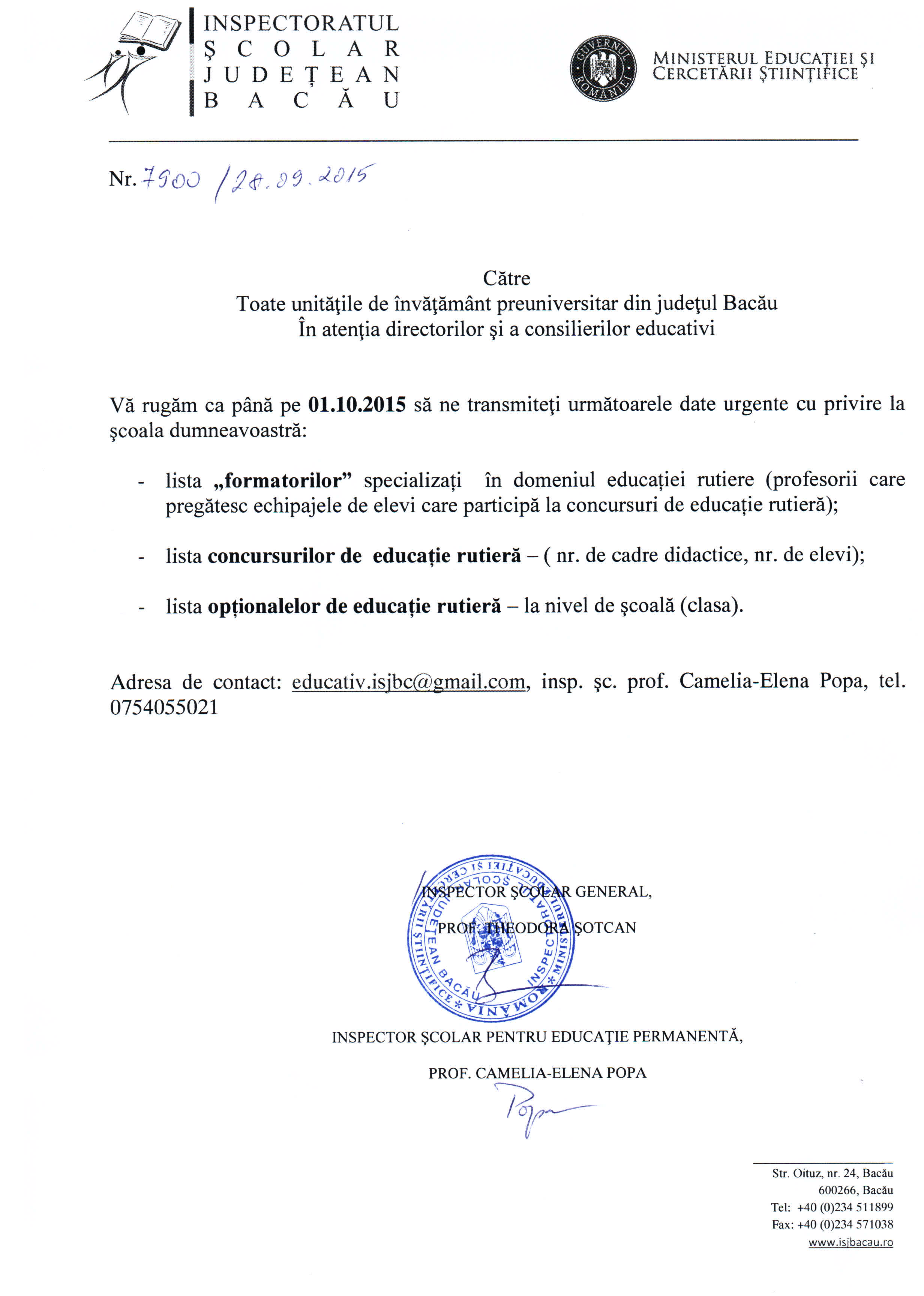 RAPORTARI URGENTE PANA LA 01.10.2015
