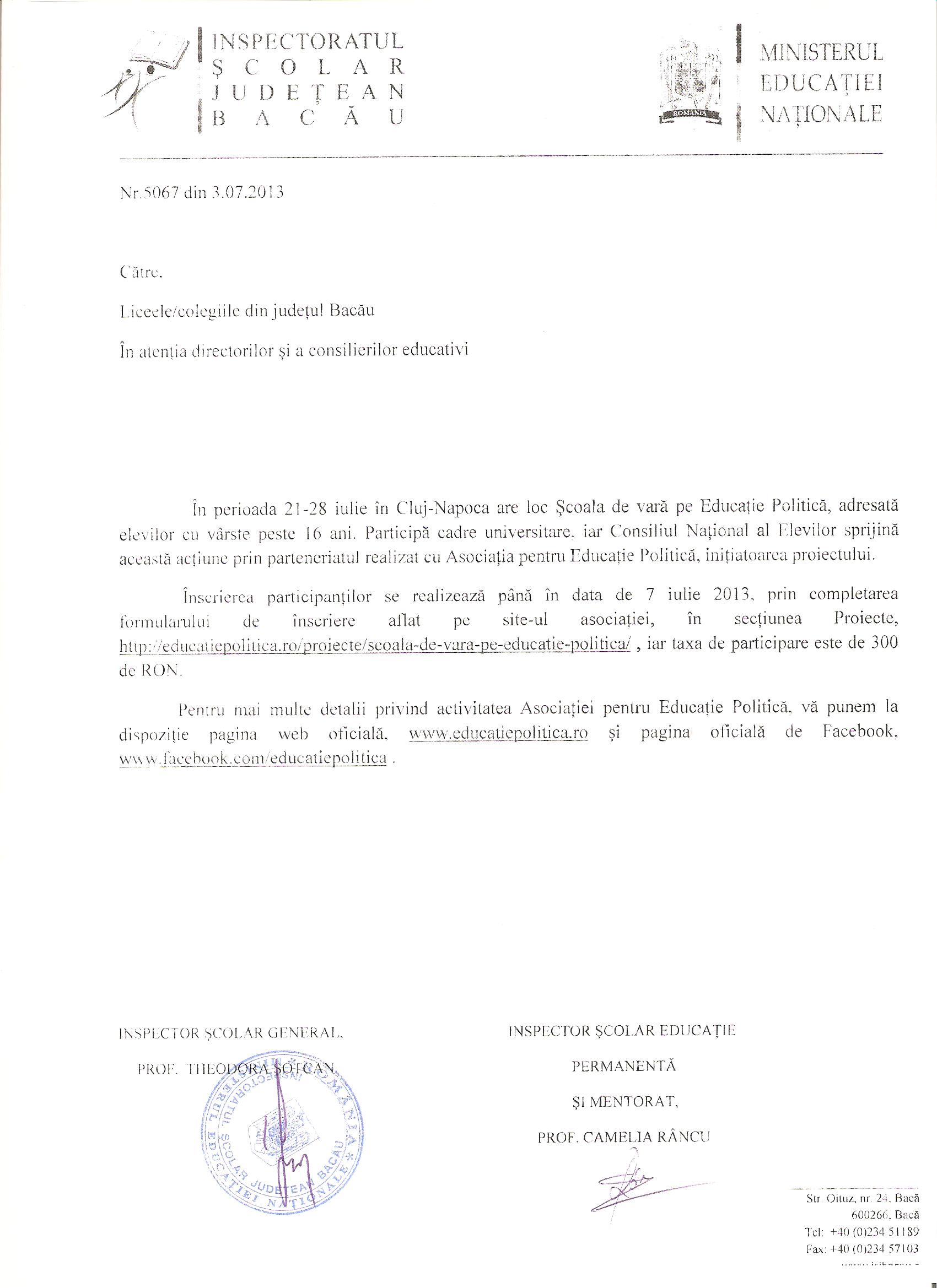 SCOALA DE VARA-CLUJ PENTRU ELEVII DE LICEU
