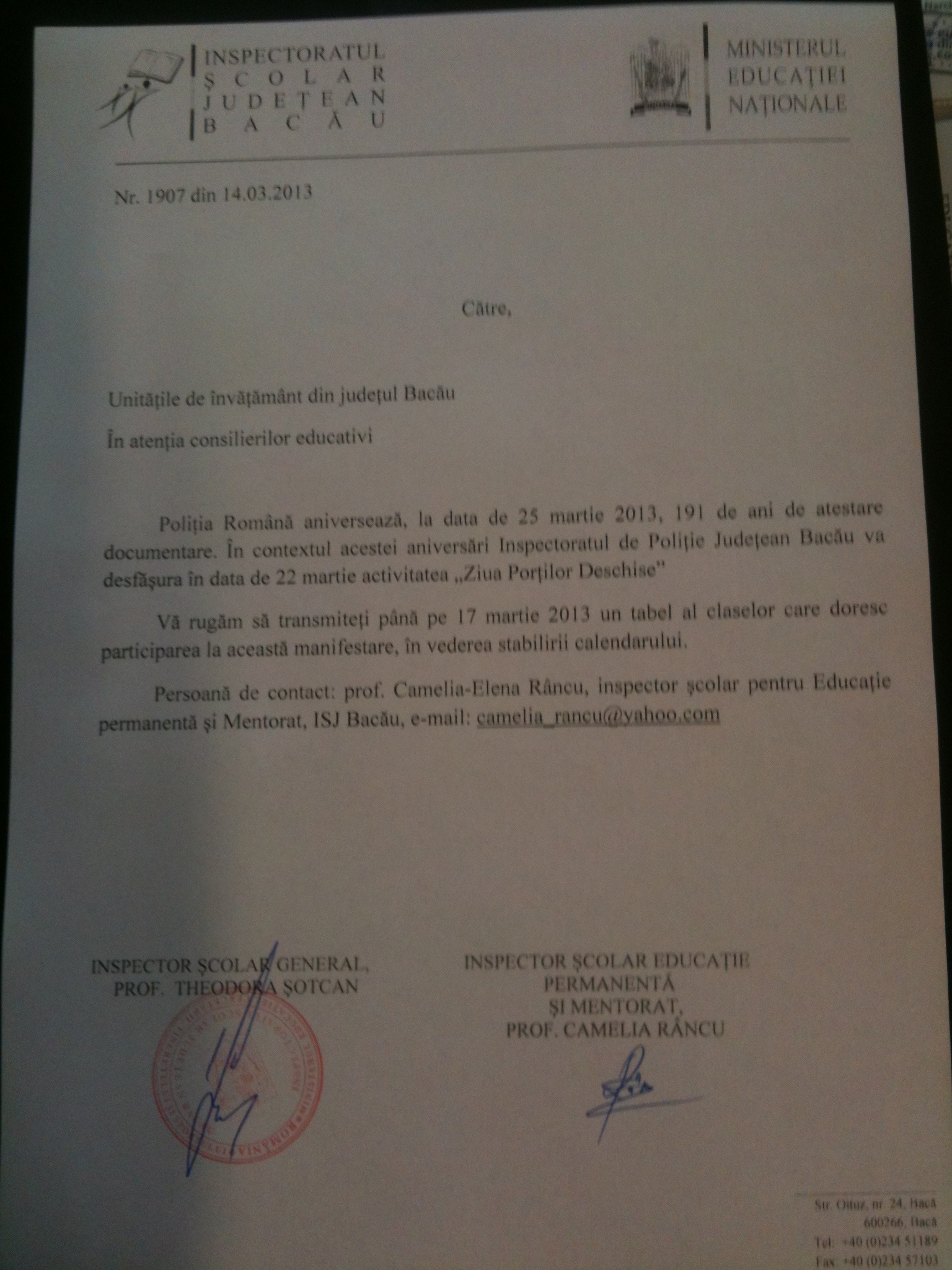 "Ziua Portilor Deschise", Inspectoratul de Politie Judetean Bacau