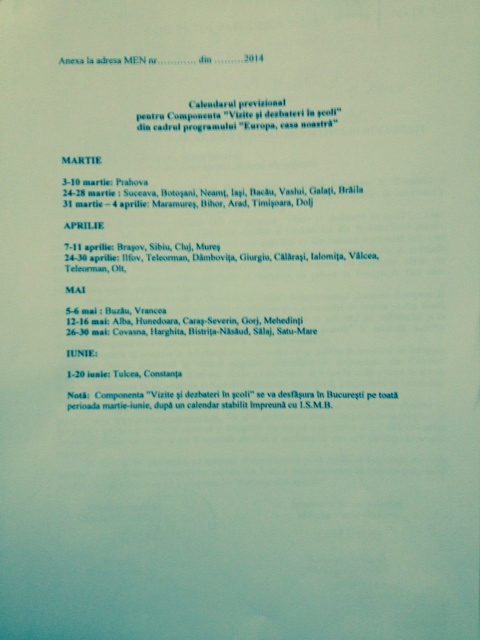 Atasat gasiti calendarul previzional pentru componenta VIZITE SI DEZBATERI IN SCOLI