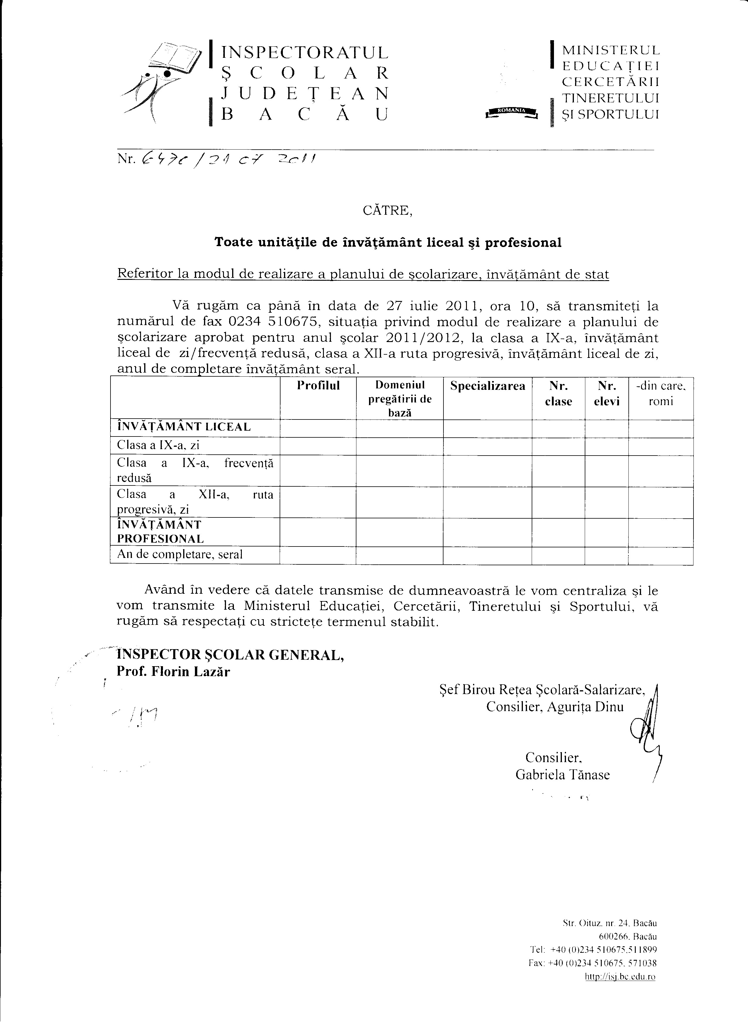 IMPORTANT! URGENT! IN ATENTIA UNITATILOR DE INVATAMANT LICEAL