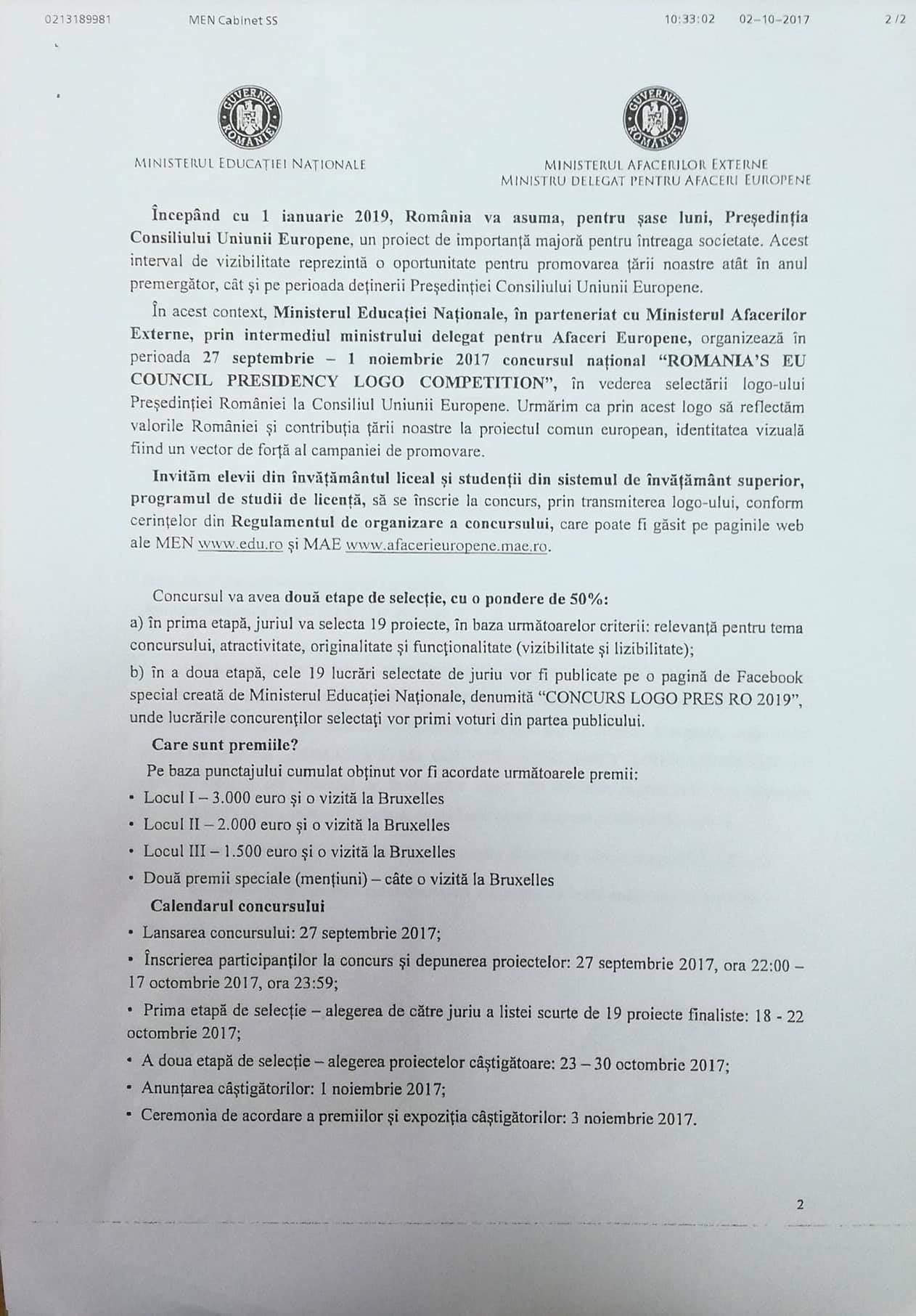 Concurs național ROMANIA'S E.U. COUNCIL PRESIDENCY LOGO COMPETITION